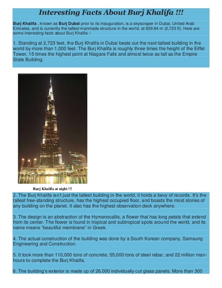 Tallest free-standing structure in the world. The spire is a bit controversial and people claim that this uninhabited space was simply used to make the. Facts About Burj Khalifa.